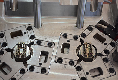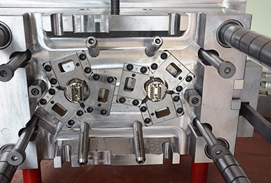 福特電源接頭,我們通過(guò)與客人的檢討,對(duì)產(chǎn)品進(jìn)行優(yōu)化,使產(chǎn)品能夠順利包膠,并吹氣加頂出進(jìn)行產(chǎn)品強(qiáng)脫,完成注塑。